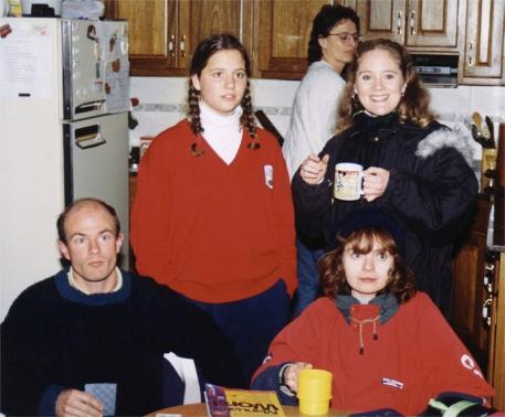 In Paul's kitchen, again. Seated are Kenny and Claudia. Standing are Lisa (Paul's daughter), Beth, (Paul's wife), and Melinda (with a big smile on her face, as usual :-) ).